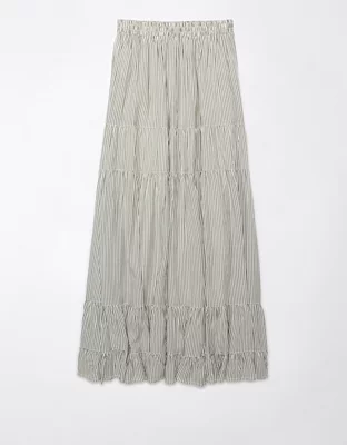 AE High-Waisted Striped Tiered Ruffle Hem Maxi Skirt
