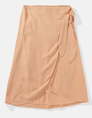 AE Linen-Blend Faux Wrap Midi Skirt
