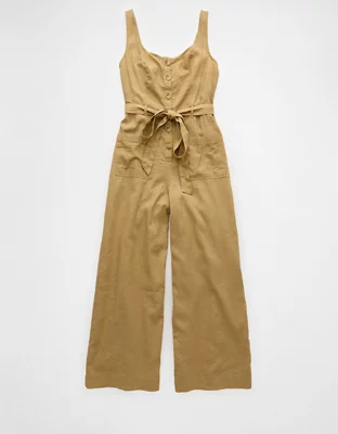 AE Linen-Blend Button-Up Jumpsuit