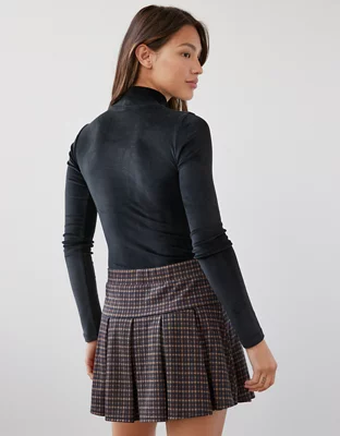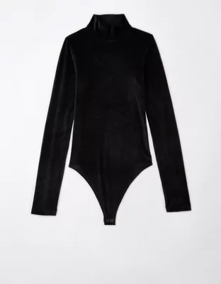 AE Long-Sleeve Velvet Mockneck Bodysuit