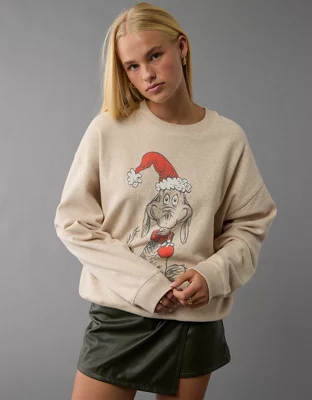 AE Holiday Grinch Graphic Relaxed Crew Neck Sweatshirt