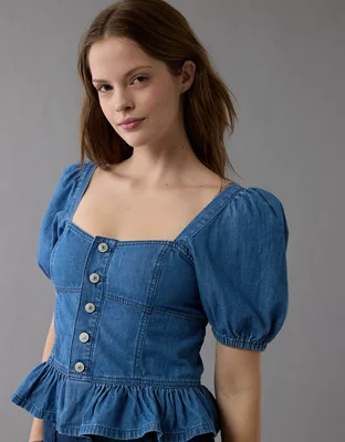 AE Denim Puff Sleeve Shirt