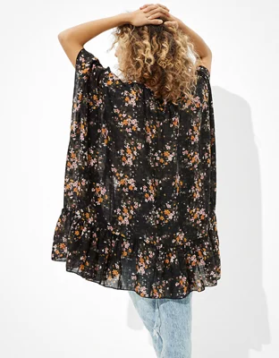 AE Floral Ruffled Midi Kimono