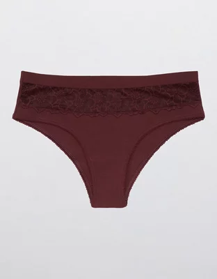 Aerie Undie Cheeky de algodón en punto elástico con encaje Fa La