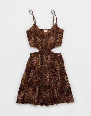 Aerie Vestido Corto con Calado y Bordado con Nido de Abeja
