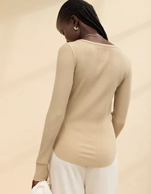 Aerie T-shirt Esencial con Cuello Henley para Usar en Capas