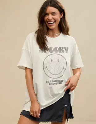 Aerie Smiley® T-shirt Boyfriend Extragrande con Gráfico de Halloween