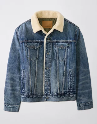 AE Chamarra de Camionero de Tela de Rizo y Denim