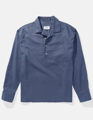 AE Camisa estilo Sudadera Manga Larga de Mezcla de Lino