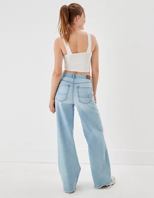 AE Super High-Waisted Baggy Wide-Leg Jean con rasgados
