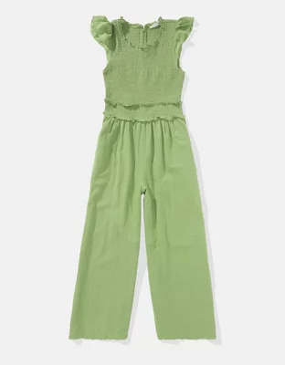 AE Jumpsuit Bordado con Nido de Abeja con Mangas con Volantes