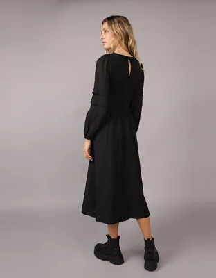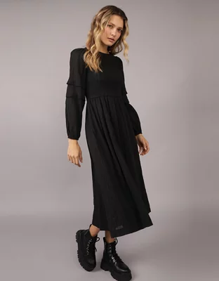 Vestido midi bordado con nido de abeja AE