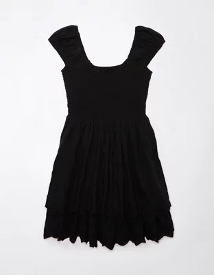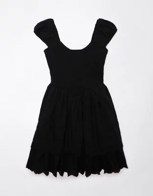 AE Vestido Corto Bordado con Nido de Abeja con Volante y Mangas Abombadas