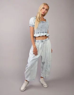 AE Playera con Cuello Alto y Mangas Abombadas con Bordado con Nido de Abeja