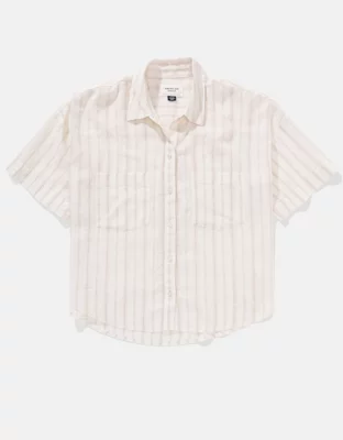 AE Camisa de Mezcla de Lino Manga Corta con Botones
