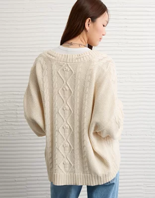 AE Cárdigan en Punto Trenzado con Frente Abierto
