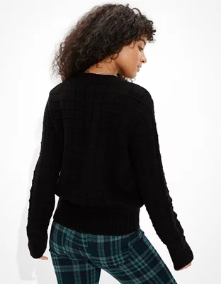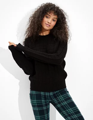 AE Suéter con cuello redondo y textura tipo waffle
