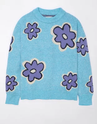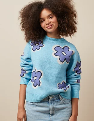 AE Whoa So Soft Suéter Floral con Cuello Redondo