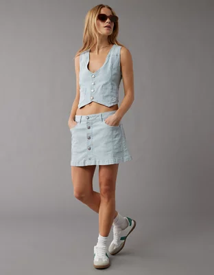 AE Chaleco de Denim con Rayas tipo Vías Férreas