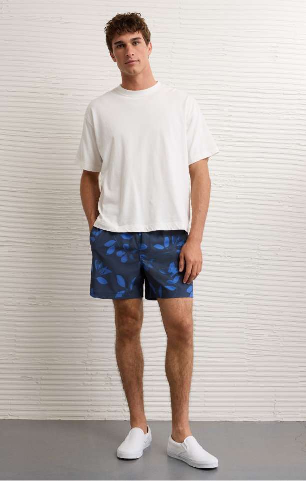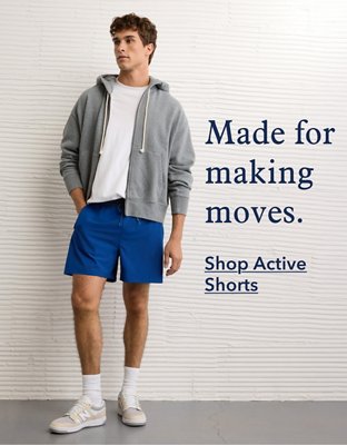 Every pair of men’s shorts is made to feel as good as they look. If you really want to play up the casual vibes, check out men’s jogger shorts made in lightweight fleece, nylon, twill, and other fabrications designed for 24/7 comfort no matter what you’re up to. This laid-back style is just right when you need to go from sport to street, from class to gym, and everywhere in between. Find them in 5" inseams or in longer lengths to create the look you want. And when it’s time to dive right in, turn to American Eagle men's swim swimsuits with board shorts and swim trunks. Wear them with all your go-to men's shirts and tops and you're set with an outfit you'll feel good in.