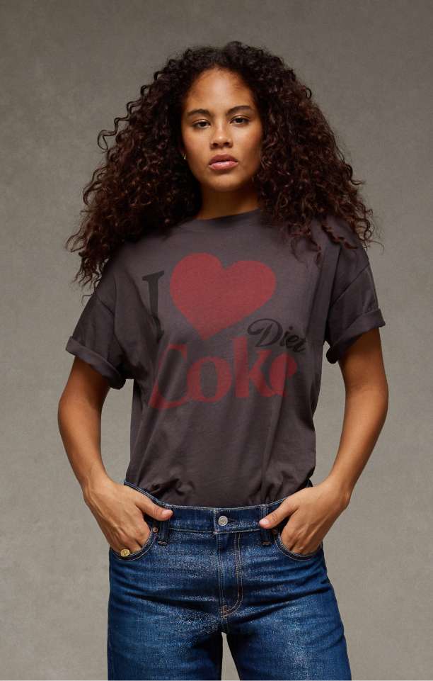 Upgrade your look with American Eagle graphic tees for women this season! Our graphic tees & tops keep you in good supply of a fresh look daily, and come in tons of different fit and style options so you never run out of on-trend ‘fits. Try band tees, pop culture tees, graphic hoodies, holiday t-shirts, vintage sweatshirts, and more! You’ll always find something new for every day of the week when you refresh your look with new women’s graphic tees from AE.