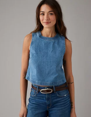 AE Sleeveless Cropped Denim Shift Top