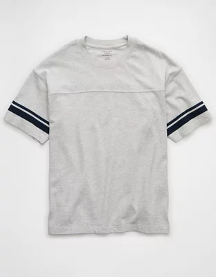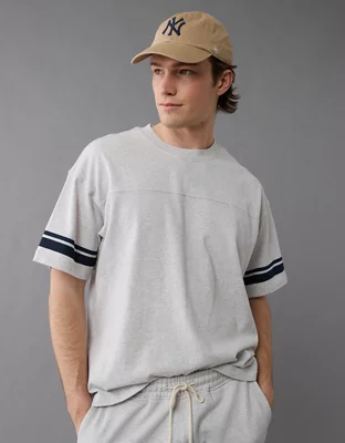 A trend-forward boxy fit with a sporty retro football tee-inspired construction.