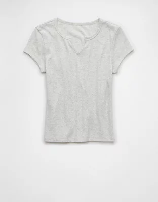 Our chic '90s-inspired cropped tee, featuring an on-trend notch neck. It's perfect for layering, rocking solo & feeling good.