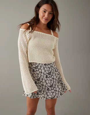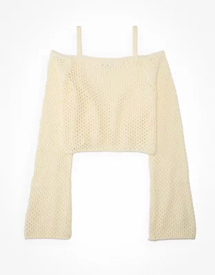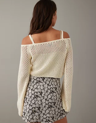 AE Cropped Open-Stitch Off-the-Shoulder Sweater