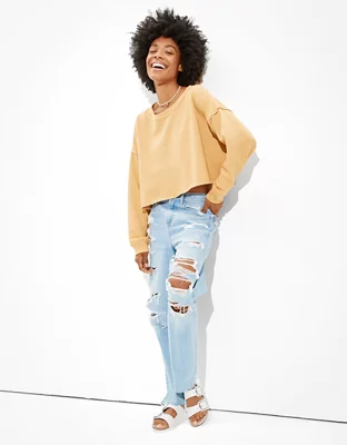 Get comfy! This sweatshirt is made from our always-cozy fleece and in a cropped silhouette for easy styling.