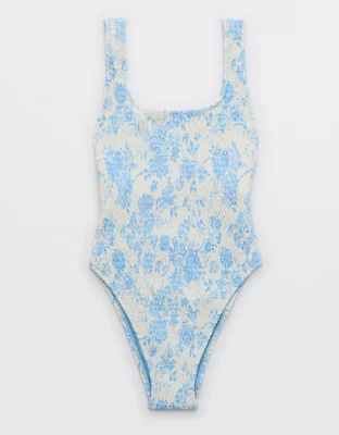 Aerie Smocked Toile Birthday Scoop Cheekiest One Piece Swimsuit