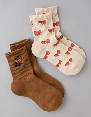 A cozy, fun pair of cropped crew socks with a cool cat design, perfect for adding a playful touch to your everyday 'fits.