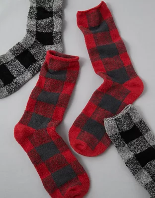 These extra-cozy socks combine a heritage buffalo plaid pattern with a fuzzy finish.