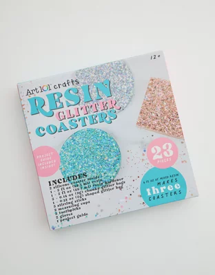 Explore the resin craft trend with Art 101 Crafts resin glitter coaster kit. Your box set includes 23 total pieces to create a sparkly coaster set. These coasters are the perfect beginner resin project for crafters of all skill levels.