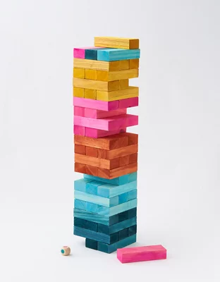 Stack the blocks and try not to make them fall in this colorful game of crashes! Play against friends and family as you take turns to remove a block from the tower and place it on the top – it can reach over double its original height!