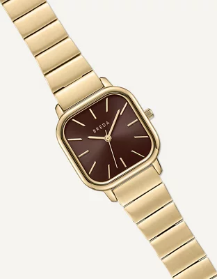 A modern approach to a distinctive and classic style. The Esther carries a bold 26mm square case, sun-ray brown brushed dial and fastens with a gold-plated stainless steel bracelet. A style that transcends occasion or trend, created with timeless design in mind.