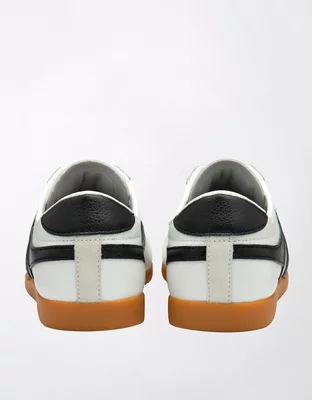 Elevate your sneaker game with Bullet Leather, a sleek and stylish go-to sneaker in the Gola Classics collection. This sneaker features a crisp white leather upper with black Gola wingflash branding, complemented by a classic low profile gum sole. Bullet effortlessly blends heritage design with modern appeal.