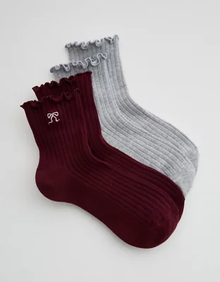 Aerie Lettuce Edge Quarter Sock 2-Pack