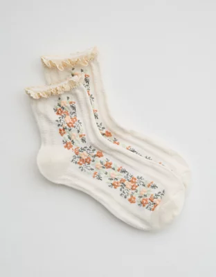 Aerie Ruffle Floral Quarter Socks