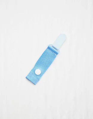 Used to secure dangling tubes, caths, and cords. Open the clip, gather the excess tubing, place between the two layers of straps, & close the snaps. Then, open the clip and attach it to a shirt or bag.