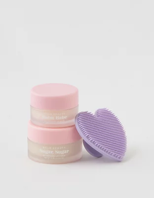 You’ll be coming back for seconds! An intense, natural and vegan lip treatment duo in a delicious birthday cake scent. Sugar, Sugar lip scrub gently exfoliates, hydrates and brightens, while Balm Babe lip balm intensely soothes and nourishes lips.