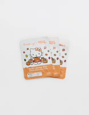 Glowing skin, powered by pumpkin! For dewy, bouncy skin. The limited edition Hello Kitty "Hello, Plump-kin!" printed essence sheet mask is infused with pumpkin enzymes, collagen, and allantoin for a youthful appearance.