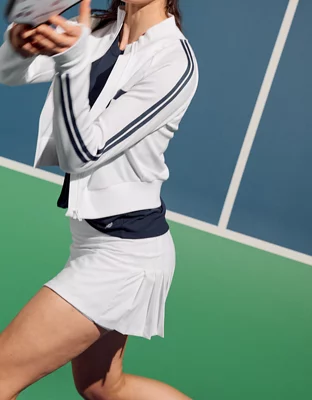 The Lucia Skort is business in the front, party in the back! Made with sweat-wicking stretch fabric and featuring Pickletini's signature shaper short, this sleek skort with flat front and flirty back pleats, is equal parts sporty, stylish and fun. Tuck away a pickleball in the hidden interior pocket while you store your phone in the exterior side pocket. Made to move, twirl and turn heads.