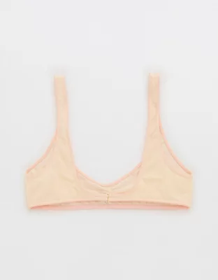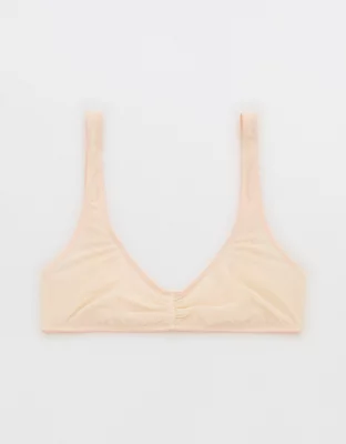 Sheer mesh in a scoop bralette silhouette with ruched center front detail.