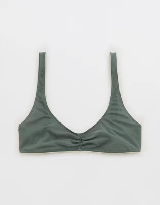 Sheer mesh in a scoop bralette silhouette with ruched center front detail.