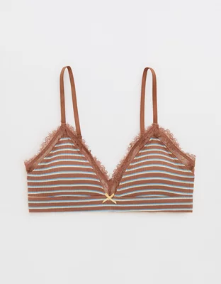 Soft, textured Cotton Rib in a triangle bralette fit with lace trim & removable pads.