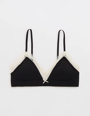 Superchill Cotton Rib Lace Trim Triangle Bralette