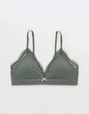 Soft, textured Cotton Rib in a triangle bralette fit with lace trim & removable pads.