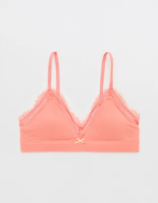 Soft, textured Cotton Rib in a triangle bralette fit with lace trim & removable pads.