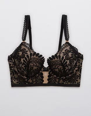 Aerie Real Power Plunge Push Up Far Out Lace Bra